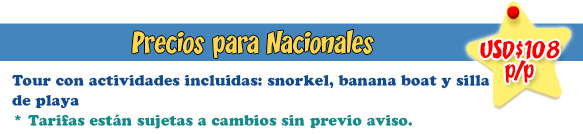 • Tour con actividades incluidas: snorkel, banana boat. |
